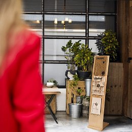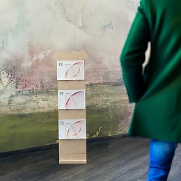 A designer brochure stand made in Italy, from renewable, recyclable materials, produced regionally and delivered in a few days.