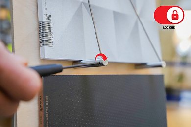 The untreated FSC-certified wood from Trentino-South Tyrol and the stainless steel holders create a resource-saving catalog display for the environmentally conscious customer.